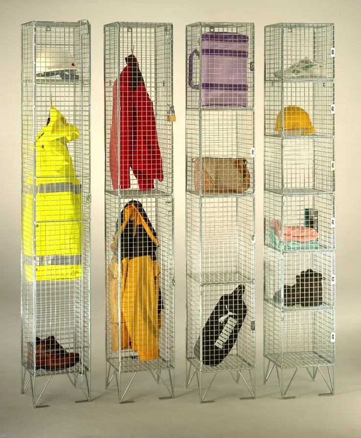 Economy Mesh Four Door Locker 1-6 compartments versions available in 2 Locker sizes:1980mm high x 305mm wide x 305mm deep1980mm high x 305mm wide x 457mm deep Available in BZP (Bright Zinc Plate ) finish.Robust, Mesh Lockers allow for excellen...